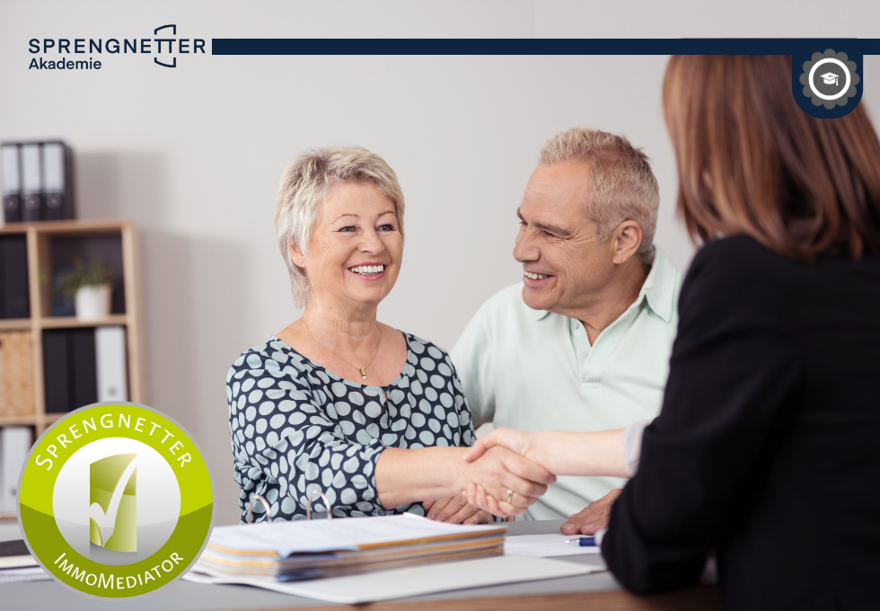 Der Praxis-Workshop mündet in einem 30-minütigen Kompetenztest, der ausschließlich Theoriefragen beinhaltet. Er wird als Onlinetest (Multiple-Choice) auf dem Lern-Management-System von Sprengnetter durchgeführt. Sie haben dann insgesamt sieben Werktage Zeit diesen abschließend zu absolvieren. Der Titel „Geprüfte/r ImmoMediator, Sprengnetter Akademie“ (inkl. Nutzung des Kompetenzlogos) wird bei erfolgreicher Absolvierung für die Dauer von 3 Jahren verliehen.